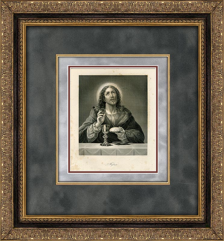 Гравюра «Иисус преломляет хлеб на Тайной вечере» воссоздаёт один из самых священных и трепетных моментов Нового Завета — момент установления Таинства Евхаристии. Перед нами — фигура Христа, он один, хотя по сюжету и окружённый апостолами, в ту самую ночь, когда Он должен быть предан.